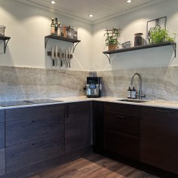 I detta Formakök får shaker-stilen nytt liv i en sofistikerad greige-ton. Bricmate-materialet på bänkskivor och stänkskydd ger en subtil textur som lyfter designen. Köket balanserar det klassiska med det moderna och skapar en varm, jordnära känsla. Perfekt för dig som vill ha ett tidlöst shaker-kök med elegans.