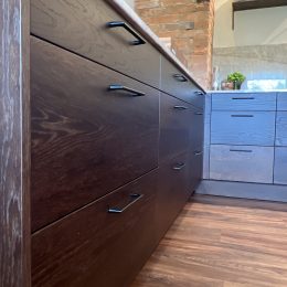 - Lucka: Målad lucka kombinerad med betsad svart ek