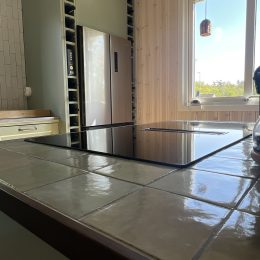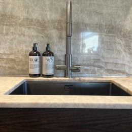 - Bänkskiva och stänkskydd: Dekton Arga 20mm